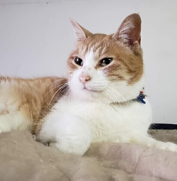 | 特徴(性格など) | 仮名: とらちゃん(メス) 毛色: 茶シロ 性格」 人に対してはとてもフレンドリーで、初対面でも名前を呼ぶと返事をします。 撫でられるのが大好き、顔を近づけると頬ずりもしてくれます。 膝に乗って甘えてきてそのまま寝てしまうこともあるほど人が好きですが、猫はちょっとね、好きじゃないのよ。 とらちゃんが決めた一定の距離を超えて他の子が来る事が気に入らず目の前を横切っただけで怒ってしまいます。 猫の友達が欲しいタイプではないので、1頭飼いでマイペースに過ごせる環境が合っていると思います。 シニアの域に入っていますが、とても若々しく元気です。 |