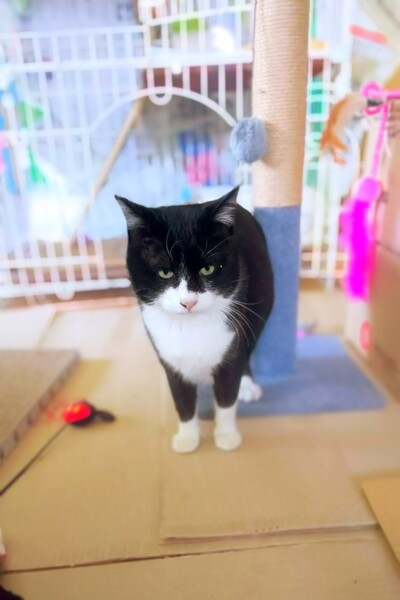 | 特徴(性格など) | おっとりマイペースなポンタくん。白いソックス履いてるみたいでかわいいですよね(^^) 人懐っこいところもあり、すごく飼いやすいと思います♪ ポンタくんにぜひ会いに来てください。 ・去勢手術済み ・ノミダニ便虫駆除済 ・エイズ(−)白血病(−) ・3種混合ワクチン接種済 |