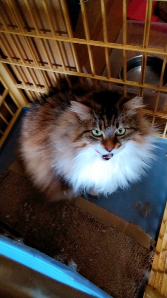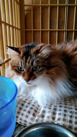 | 特徴(性格など) | ベティちゃん 女の子 4歳ぐらいだと思います。 毛長 避妊済み レボリューション済み 検便済み ワクチン済み(今年のワクチンをしてからのお届け) 保護当時は、普通のちょっと毛長でしたが、 穀物フリーのフード(ナチュラルチョイスサーモン)を食べているうちに、毛並みがもふもふに、 今では、超もふもふゴージャス猫になりました。 性格は、毛長種そのもの、女王様です。お外で暮らしていたので、室内では警戒して、追いかければ逃げますが、 気にいった時に、スリスリ、おやつで甘えます。 ナデナデ、ブラッシングは好きですが、気に入らないと怒ります女王様ですから、、 怒っても、手をあげたり威嚇したりはしません。 軽く手を噛んで、「私、おこってるのよ!」と知らせます。女王様ですから、 おやつを貰えないときなどは、睨んだりします。 猫ちゃんとは、普通に一緒に暮らせますが、仲良くするつもりはないようです。 相手から、近寄ってくるのは、拒みません女王様ですから、、 年齢や誕生日は推定です。 お外で暮らしていた子でので、環境に慣れるのに時間がかかると思いますが、 攻撃性もなく、人間も大好きですので、ゆっくり接していただければ、うれしいです。 現在。太り気味です。 ブラッシングは、好きですが、ゲージが、キャリーに入れてからでないと逃げます。 |