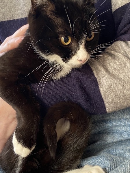 | 特徴(性格など) | 黒多めのハチワレ猫です(耳カットあり) まだ人馴れ修行中ですが、抱っこも出来る様になって、ご飯もよく食べ元気です。 体重も2.4キロ程です。 |