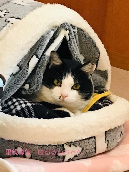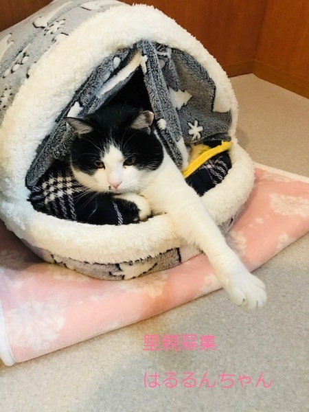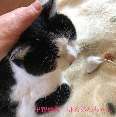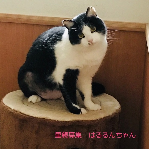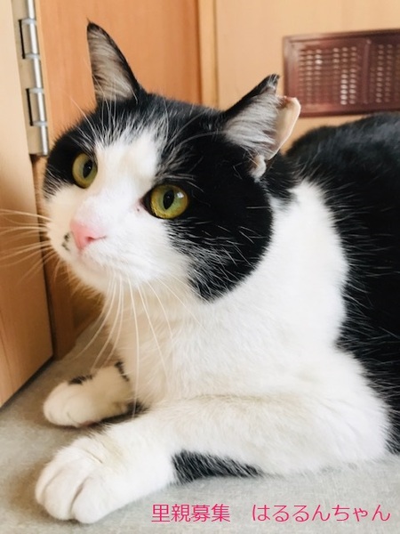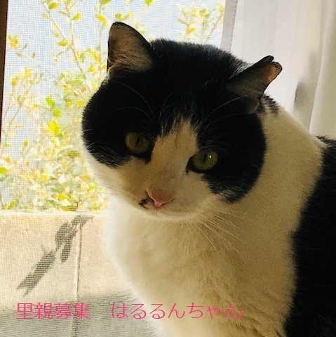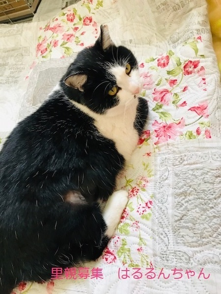 | 特徴(性格など) | 白黒猫、女の子、仮名::はるるんちゃん 推定3歳くらい、体重:5kg(2/20現在) 健康診断済み、ブロードライン済み(2/19)、駆虫済み(2/26)、 避妊手術確認済み(2022年2/19) 血液検査-エイズ・白血病-ともに陰性(2/20) 三種混合ワクチン済み(2/20)、 トイレしつけ済み 少し大きめの女の子。 性格は穏やかで、鳴いて甘えて来ます。 膝に乗せても嫌がらず、撫でるとゴロゴロ言います。 食欲は旺盛で何でもよく食べます。 トイレのマナーも良く、砂をあまり散らしません。 とても飼いやすく、可愛らしい子です。 私には2〜3日で懐いてくれました。 他の猫を警戒します。外の生活は辛かったのかなと思います。 他の猫と別の部屋にしていますが、私がいる時はドアを開けて行き来ができるようにしてみると、仲間に入っていきませんが、ケンカするでもなく、少し距離を置いて他の猫を見ている感じです。穏やかな大人しい猫さんです。 横にスライドするドアを上手に開けるため、脱走防止には注意が必要です。 3/12 三種混合ワクチン追加接種。 |