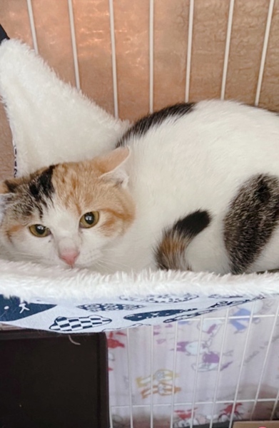 | 特徴(性格など) | 三毛猫ちゃんです。とても可愛い顔をしてる猫ちゃんですが、凄く怖がりでまだ人馴れはしてませんが、触る事は出来ますし、シャーも多少しますが攻撃性はありません。 慣れるのに、時間がかかるかも知れませんが ゆっくりと見守ってくれるご家族を探して居ます。 |