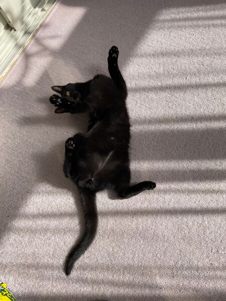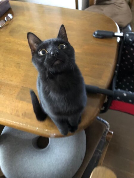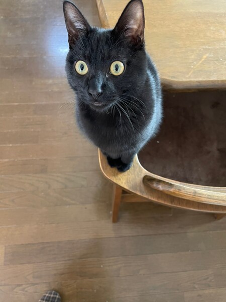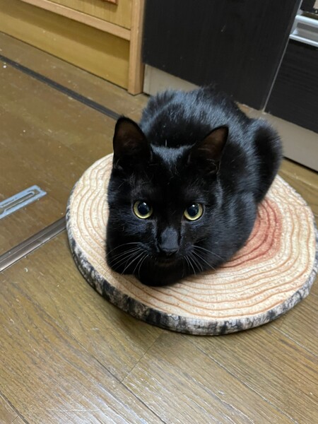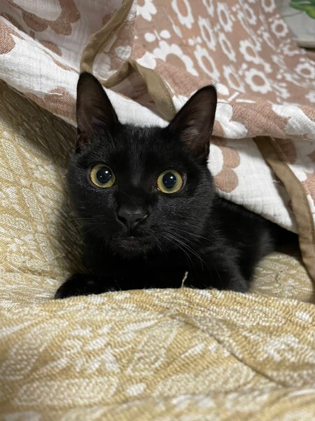 | 特徴(性格など) | 2021.8.23生まれ(推定) 毛色:黒 丸いおめめで、すーと長いしっぽがご自慢の可愛い男の子。 人が好きでいつも追いかけて来ます。 優しく繊細な子なので、他の猫ちゃんとも、うまくやっていけそうな性格です。 ネコのオモチャで遊ぶのも大好き♪ |