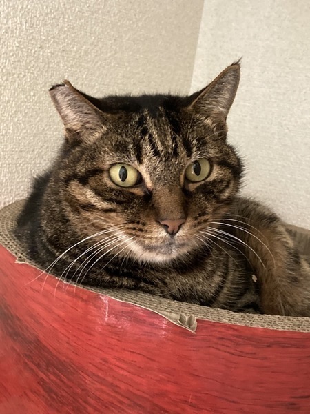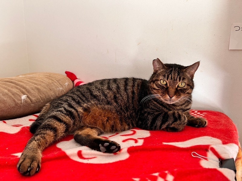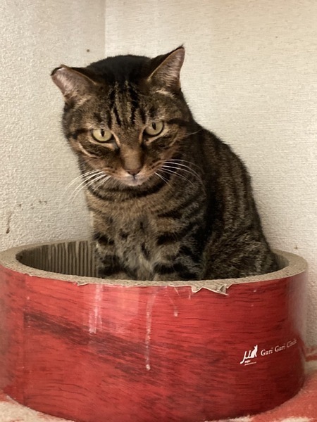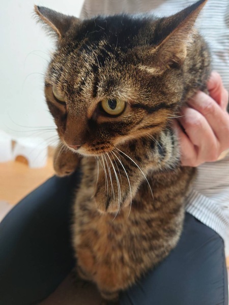 | 特徴(性格など) | まだ若いキジトラの男の子です。人にスリスリゴロゴロと甘えるかわいらしい子です。穏やかな性格の子でご飯もよく食べ体調も良く、家庭猫として迎えてあげやすいと思います。 猫エイズ 陰性 白血病 陰性 |
