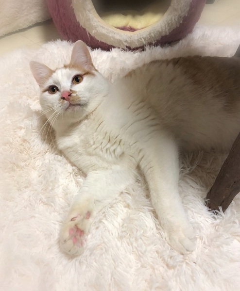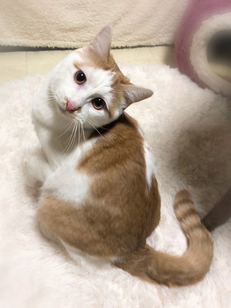 | 特徴(性格など) | おにぎりみたいなまん丸顔・むっちり体型・むくむく手足の男の子 ほんの少しだけ被毛が長いです。 環境に慣れるまでじーっと固まってしまいますが、撫でられ好きの遊び好き。 食いしん坊さんでレトルトが入っている場所を開けると、わくわくしながらやって来ます。 |