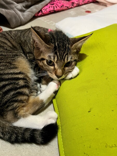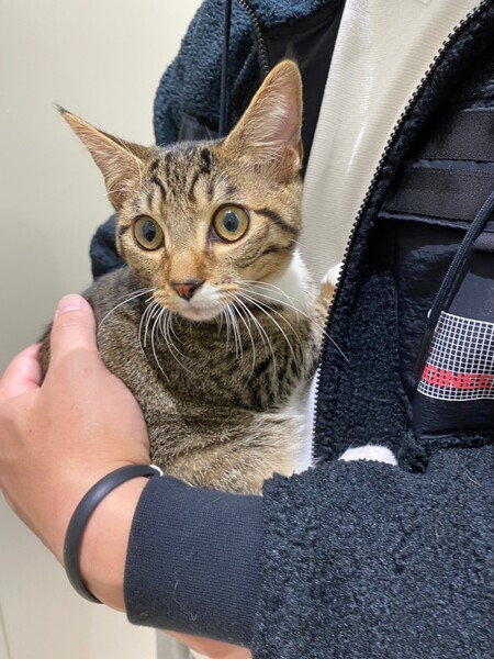 | 特徴(性格など) | 2021.9.18生まれ 毛色:キジ白 大人しそうに見えるけど実は好奇心旺盛で ちゃっかりしてるキジ白(キジ多め)女子♪ 人も猫も大好きで膝の上・肩乗り大好きな甘えたさんです♡ |