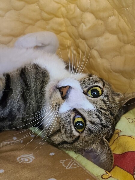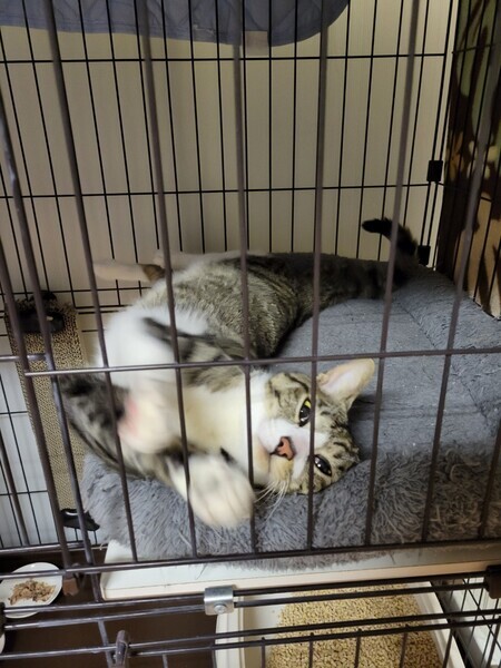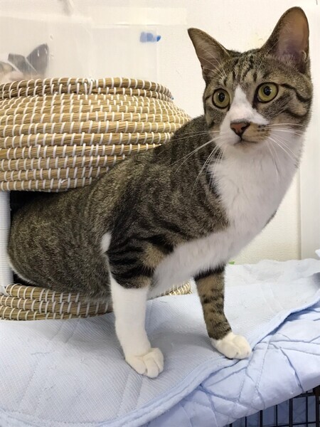| 特徴(性格など) | 2020.5.12生まれ(推定) 毛色:キジ白 キジ白のスリムなボディーに長いしっぽとスラッとした手足が素敵です♡ 子供とも一緒にいられるほど人に慣れています。 ナデナデが好きで撫でるとゴロゴロクネクネ可愛いです♪ ダンボールに寝るのが好きです。 甘えん坊なので、一人っ子で愛情独占させてくれる里親様募集中!! |