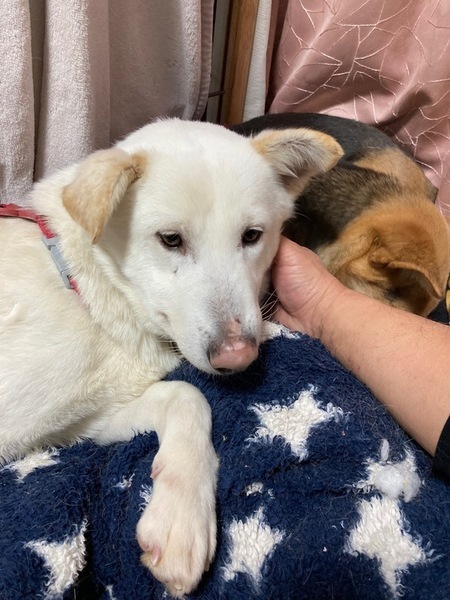 | 特徴(性格など) | 【愛称】 トントン 【犬種】 ミックス 【性別】 オス (去勢手術済) 【年齢】 推定2歳 【毛色】 白、薄茶 【体重】 14.0kg 【状態】 混合ワクチン・狂犬病予防接種済、フィラリア(-)、検便(-)、 ノミ・ダニ駆除済、マイクロチップ装着済 【人馴】 問題なし 【預かり場所】 千葉県成田市 【預かり日記】 pincomaru413(Instagram) https://www.instagram.com/pincomaru413/ 【経緯】 茨城県動物指導センターより引き取り 【性格・その他】 優しい目が可愛らしい、穏やかな男の子です。 のんびりした性格でいつも好きな場所で寛いでいます。部屋の中を走り回ったり騒がしくすることは ありませんので、犬と穏やかな生活を望むご家庭に合っていると思います。 甘えん坊で人に撫でられることが大好きです。撫でると目を閉じ口角を上げてうっとりした顔で 甘えてきます。 全身どこを触っても攻撃的になることはなく、抱っこは少し苦手ですがシャンプーや 足拭き等のお世話は問題なくできます。 他犬とも友好的に接し上手に遊ぶことができますが、マイペースでやきもちやきなので 人の愛情を独り占めできる一頭飼育が理想です。 預かり宅では完全室内フリーで過ごしています。今のところ留守番中の悪戯はありません。 散歩は大好きで、準備をすると急いで玄関まで来ます。 散歩中はリードの引きもなく上手に歩けます。散歩中に出会う犬には鼻鳴きをして 近寄りますが相手が苦手な犬だと小さく唸ってしまうことがあります。 排泄は朝晩のお散歩で済ませています。 車には弱くごく短時間乗っただけでもヨダレが垂れてしまいます。短い距離から慣らしていくと 良いかもしれません。 食事は1日2回、ドライフードだけでも喜んで良く食べます。お腹が弱いので消化器ケアの できるフードを選んでいます。 おやつは大好きで、人の食べ物も欲しがりますので誤飲誤食には注意が必要です。 まだ若く体力もありますので、十分な散歩やたくさんの触れ合う時間を作ることのできる環境の ご家族に託したいと希望しています。 今後十数年先にもしっかりとお世話ができるかどうかご一考いただいてからご応募ください。 引き続き室内飼育で、フィラリア予防やワクチン接種などの定期的健康管理、 脱走・逸走防止への細心の注意を必ずお約束していただける関東圏内のご家庭で、 終生家族の一員として愛情をたっぷり注いでくださる方からのお問い合わせをお待ちしております。 なお大変申し訳ありませんが、主にお世話されるのが高齢の方のご家庭、単身の方からの お申し込みにつきましてはお断りさせていただきますので予めご了承ください。 【お申し込み】↓よくお読み下さい↓ 特徴、譲渡条件や いぬ助けのホームページより譲渡までの流れをよくお読み頂き 直接 いぬ助けのHPの「トントン」のページよりお申し込みください。 → https://www.inudasuke.com → いぬの里親さん募集 → 「トントン」のページより 内容をご確認の上、アンケートを送って下さい。 (こちらのサイトのアンケートではお時間を頂く場合がございます。 直接いぬ助けのHPよりお願いします。) 【いぬ助けSNS】 フェイスブック→ https://www.facebook.com/inudasuke/ インスタグラム→ https://www.instagram.com/inudasuke/ |