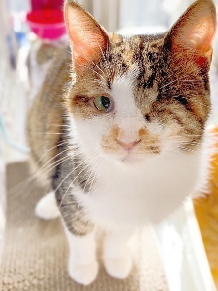 | 特徴(性格など) | ◆ムームーちゃん びびりだけどスリゴロの三毛の女の子 ○沖縄県内にて保護されました。 ○推定1歳くらい(2022年6月上旬時点)の三毛の女の子です。体重は3.3㎏(2022年5月7日時点)です。 ○左眼球摘出手術(2021年9月30日)をしています。 ○歯肉炎があり、抗生剤治療中です。 ○風邪症状(気管支炎・鼻水・涙目)がありましたが治療にて症状改善しています。 ○尻尾は長くて真っ直ぐです。 ○びびりだけど、スリゴロで寂しがり屋さんです。 ○攻撃性は全くありません。 ○物静かで大人しいです。 ○食べ物が大好きです。 ○おもちゃでもよく遊びます。 ○撫でられるのが大好きです。 ○鳴き声は短め。高くて可愛らしいです。 ◯YouTubeにも動画をあげています。こちらもご覧下さい。 「ムームー」その1 https://youtu.be/mG6RdE_1OlQ 「ムームー」その2 https://youtu.be/Ckz_cCuS4ck 「ムームー」その3 https://youtu.be/6YIdWqfAvA0 「ムームー」その4 https://youtube.com/shorts/j7n1fV02f68 ★ワクチン1回接種済み、不妊手術済み。 ★猫エイズ、猫白血病ともに陰性。 ★左眼球摘出手術(2021年9月30日)をしています。 ★歯肉炎があり、抗生剤治療中です。 ★風邪症状(気管支炎・鼻水・涙目)ありましたが治療にて症状改善しています。 ○6/12(日)開催の譲渡会に参加予定!下の要項をお読みいただき、ぜひ会いに来てください♪ ☆★☆★☆★☆★☆★☆★☆★☆★☆★☆★☆★☆★☆★☆★☆★☆★☆★☆★☆ ~6月12日(日)新山下にて譲渡会開催!~ ◎場所・・「島忠ホームズ 新山下店」 神奈川県横浜市中区新山下2丁目12−34 JR根岸線「桜木町駅」より横浜市営バス(8.26.58.148系統)乗車「貯木場前」より徒歩約5分 みなとみらい線「元町・中華街駅」より徒歩約15分 ◎日程・・6月12日(日)(雨天決行) ◎時間・・12時から15時 【14時30分受付終了】 (会場に利用可能な無料駐車場がございます。そちらをご利用くださいませ。) 今回はコロナ対策のため、制限を設けての開催となります。 *3密対策のため、当日10時より全時間分の整理券を配布いたします。整理券枚数には限りがございますので、上限に達した場合はご入場できません。 *各回15分 *各回先着3組様 *参加の際は、マスクの着用、アルコール消毒のご協力をお願いいたします。 *当日は検温の上、体温が37度以上の方はご参加いただけません。 *混雑状況により、中止させていただく場合がございます。 ※参加予定の犬猫は体調により参加できない場合があります。ご了承ください。 ☆★☆★☆★☆★☆★☆★☆★☆★☆★☆★☆★☆★☆★☆★☆★☆★☆★☆★☆ |