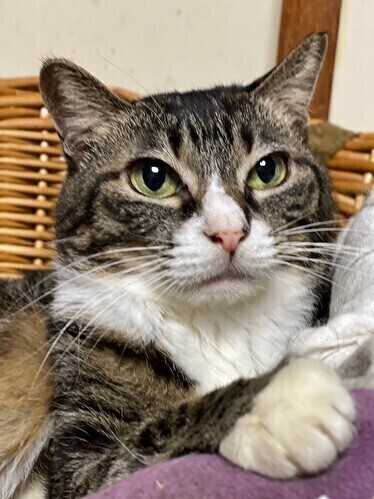 | 特徴(性格など) | 【仮名】ジュリアン 【性格】目力の強い美にゃんこのジュリアンちゃん(〃艸〃) スリムな体型で胸毛や手足の白毛はは燕尾服を着た宝塚の男役さん風で凛々しいですよ(゚∇^d) グッ!! 自由気ままな猫らしい猫です。 猫同士誰とでも仲良く、一緒に団子を作っています。 構ってちゃんではありませんが人にも慣れていてお腹の上に乗って寝たりしています。 ※1匹譲渡可 |