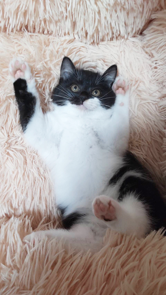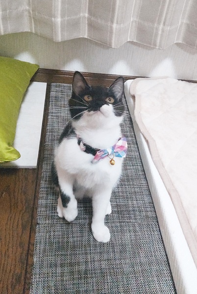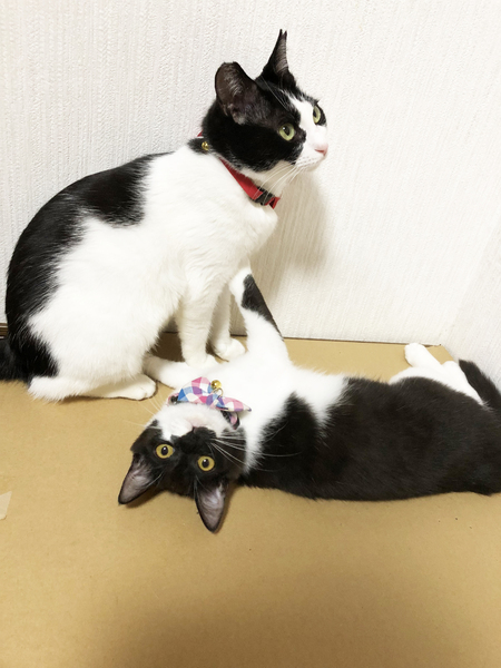 | 特徴(性格など) | ◆性格や特徴 お母さん猫 仮名 白黒 年齢 不明(推定1~2歳) 子ども猫 仮名 姫子 年齢 5カ月くらい(推定:昨年10~11月生まれ) 親子どちらも幸運を招くといわれる「尾曲がり猫」です。 直角に尾の先が曲がっています。最初は折れてる!?と思ったくらい曲がってます。 【お母さん猫】 保護当初は威嚇して隅っこで小さくなってましたが、 初日から爪を出したり噛みつこうとするような仕草は全くなく、基本的に大人しい猫さんです。 現在は威嚇も全くなくなりました。 お尻をトントンされることが好きで、トントンするよ~というしぐさをすると、お尻だけピーンと上に突き出して、トントン待ちします。 最近はおもちゃにも興味を示しだしていて、日々新しい顔を見せてくれています。 ご飯を用意しているときは後ろから控えめに体を擦り付けてきます。 振り返ると離れてしまいます。ツンデレ猫。 【子猫】 子猫の方は、生後2~3か月で保護しているので人なれしてます。 元気いっぱいです。何よりもご飯が大好き。 準備している途中でお皿に顔をつっこんできます。 お腹がすいているときは小さな声で「にーにー」鳴いてご飯の催促をします。 大好きなちゅーるを見ると、飛んできます。 うれしい時は長ーい尻尾がピーンと上を向きます。 おもちゃで遊ぶことも大好きです。あきることなくずーと遊びます。 猫じゃらし系のおもちゃを追いかけることが楽しいようです。 2匹ともお留守番はとても上手です。 2匹で遊んで1日を過ごしてます。 少しずつ甘えるようにはなってきましたが、人にべったりな子たちではないので、 お留守番が多めのご家庭でも気にしない子たちだと思います。 猫らしいツンデレを楽しめる方に是非おすすめです。 慣れるとちゃんとデレてくれます(=^・^=) |