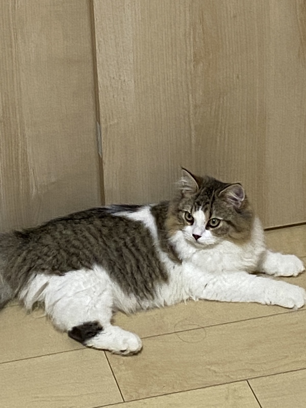 | 特徴(性格など) | ブラウンマッカレルタビー&ホワイト とても人なつこく寂しがり屋です。人見知りは全くしません。 元気いっぱいのやんちゃな男の子です。 |