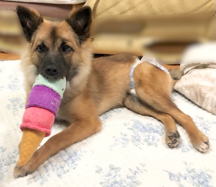 | 特徴(性格など) | MIX子犬の『てち子』です。 (ちばわんHP掲載番号No.4356)←申込時は犬の名前とこの番号を記載し、下記内容をよくお読みの上、必ずちばわんHPからお願いします。 【毛色】茶・黒 【体重】7.5kg(7/12現在) 【状態】ワクチン接種済、狂犬病予防接種済、検便(-)、ノミ・ダニ駆除済、マイクロチップ装着済、フィラリア(ー) 【人馴】最初は人見知りします 【性格・その他】明るく活発で無邪気な女の子です。 とても甘えっ子ですが、内弁慶なところもあり初対面の人には少し警戒します。 軽度の運動機能障害で、歩行時にふらつきがありますが日常生活に支障はありません。 お散歩も補助器具なしで歩くことができます。 常に尿が少しずつ出ているので、普段は紙おむつをしています。 犬同士は相性があります。仲良くできる犬とはよく遊びますが、売られた喧嘩は買うタイプです。 猫にはかなりしつこく接するので、犬に慣れた猫以外との同居は難しいです。 普段は室内フリーで生活しており、お留守番時にいたずらすることはほぼありません。 食欲は旺盛で、何でもよく食べ好き嫌いはありません。 人と遊ぶことが大好きで、ボールやおもちゃを持って来ては構って欲しいとアピールしてきます。犬とたくさん遊びたいという方にはとても良い相棒になると思います。 可愛らしい見た目でつい甘やかしたくなりますが、ダメなことはダメと一貫して躾を行うことができる、大人だけのご家庭を希望しています。 引き続き室内飼育でワクチン接種やフィラリア予防など健康管理、脱走・逸走への厳重な注意と対策を必ずお約束していただけるご家庭で、生涯家族の一員として変わらぬ愛情を注いでくださる方からのお問い合わせをお待ちしております。 なお主にお世話されるのが高齢の方のみのご家庭や、長時間のお留守番が常にあるご家庭からのお申し込みはお断りさせていただきますので予めご了承ください。 【預かり場所】千葉県千葉市 【日記】hinanon3450(インスタグラム) https://www.instagram.com/hinanon3450/ 【申込み】ちばわんの保護犬『てち子』への申し込みはhttp://www.chibawan.net/contactform_dogからお願いします。 |