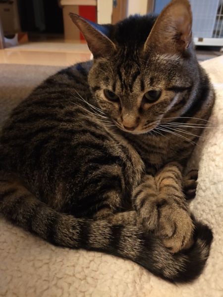 | 特徴(性格など) | 小柄なクロキジの女のコです 臆病で少し控えめな一面もありますが猫らしくツンデレで甘えてくれます 抱っこはあまり好きではないようです メス猫さんとの相性が良くないため、落ち着いたオス猫さんだとご一緒できるかなと思います エイズ、白血病陰性です 健康状態も問題なく元気です |
