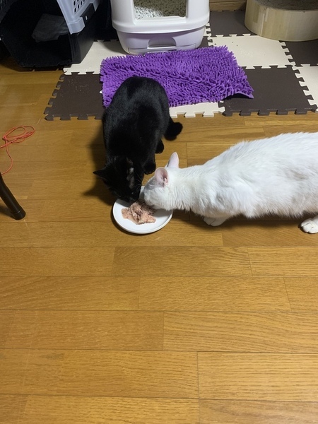 | 特徴(性格など) | 白猫 白猫が甘えん坊ですぐなれます 黒猫 黒猫が警戒心が強くなれるのにわ時間がかかるけどなれれば黒猫も甘えん坊です |