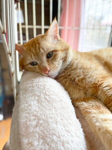 | 特徴(性格など) | 飼えなくなった方から引き取りました。なので人慣れはしていて、大人しい穏やかな子です。触られるのも大好きで気持ちよさそうにしています(^^) とらくんはエイズキャリアです。 もちろん現在、発症はしておりません。 そして人に感染することはありません。 エイズウイルスキャリアの子でも、ストレスのない生活を送ることにより発症することなく、 天寿を全うする子が多いと言われています。 ご飯もよく食べ元気にしてます。 一人暮らしの方、シニア世代の方のご応募もお待ちしています。 一度とらくんを見に来て下さい。 ・去勢手術済み ・ノミダニ便虫駆除済 ・エイズ(+)白血病(−) ・3種混合ワクチン接種済 |
