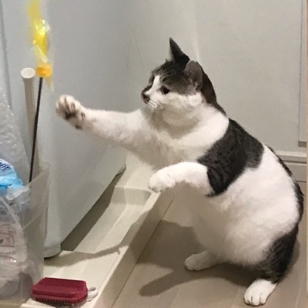 | 特徴(性格など) | 遊ぶの大好き!お尻ポンポンもウェルカム!うさぎしっぽをふりふりさせながらお尻を上げて迎えポンポンしてくれます(^^)後ろ胴体が短いため、ずんぐりむっくりなシルエットも可愛い❤️抱っこや長時間のスキンシップはまだまだ修行中なのですが、1時間耐久でも遊び飽きないじゃらし大好きっ子なので、そこから仲良くなっていけると思います!現在多頭の環境にいて仲良くやれているので、先住猫さんがいるお宅でもご相談ください! | ||