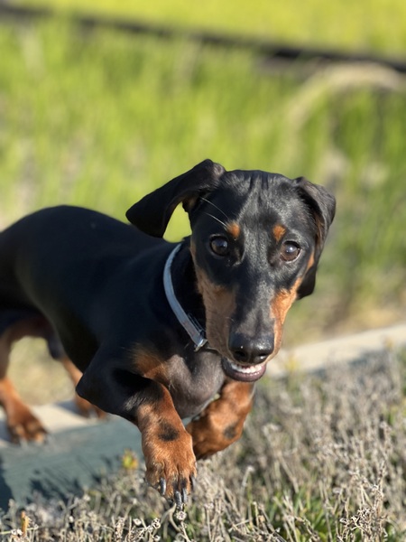 | 特徴(性格など) | 毛並みは短い黒のブラックタン、人懐っこく人の話を良く聞き顔も性格もとても可愛いです。 お座り、おて、おかわり、待て(よし!と言うまで)できます。 トイレはオシッコは確実にシーツでウンチは窓際で鳴くので開けてあげたらベランダでしてきます。 散歩は1日に一回。寝る時は布団に入って一緒に寝ます。 |