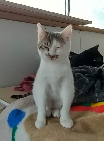 | 特徴(性格など) | 子供も抱っこできるほど人懐っこい子です。 とても可愛いです。 他の猫とも仲良く出来ます。 風邪のせいか左目がまだ開けにくいようです。もう少しで完治すると思います。 小さいころにお母さんから離れてしまったので免疫が低いです。 新しい環境で免疫が落ちてまた風邪など引く可能性があります。 病院に連れて行ってくれる優しい方よろしくお願いします。 |