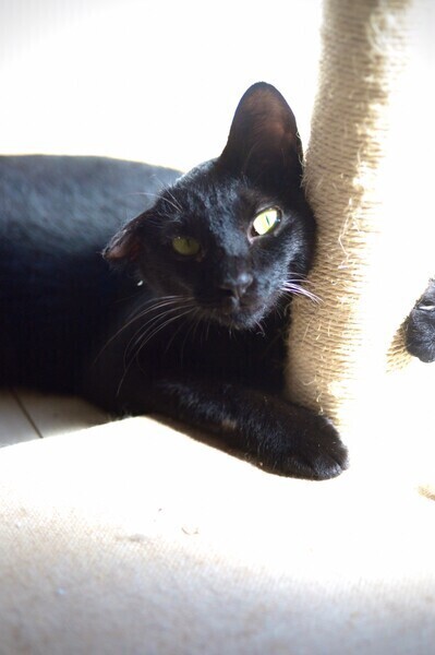 | 特徴(性格など) | 綺麗な黒猫です。 抱っこも可能です。 小さいころに怪我をして右耳が折れてますが、普通に生活してます。 ちょっとヤンチャで元気に走り回ってます。 猫エイズ陽性ですが発症はしていません。 (※ 猫エイズは咬傷で感染します。猫エイズウイルスは感染力の強い病原体ではないので、空気感染や接触感染はしません。) 1匹だけで飼ってくださる方、お待ちしております。 |