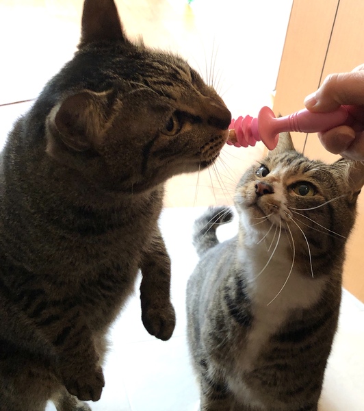 | 特徴(性格など) | キジトラとキジシロの兄弟猫です。 生まれてすぐ2匹を保護し屋内で暮らしています。人見知りもありますが甘えん坊です。 餌はピュリナワンインドア用のみです。 トイレの失敗はありません。 |