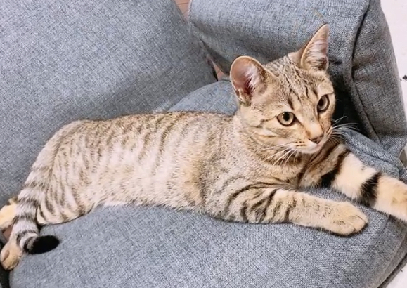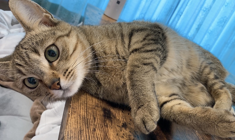 | 特徴(性格など) | キジトラとベンガルを混ぜたような模様をしている目と耳が大きなキジトラちゃんです。とても可愛い顔をしていて、人間が好きなのか何処までも後からついてきます。とろリッチと遊ぶ事が大好きで、特に紐には凄い勢いで食い付いてきます。ご飯はウェットよりカリカリ派のようです。 | ||