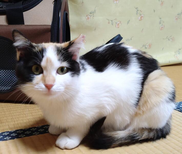 | 特徴(性格など) | きれいな三毛模様の女の子。 最初は人見知りはしますが、慣れるとお膝に乗ってきたり、甘えっこな可愛い子です♪ 健康状態良好。 ・ワクチン2回接種済み ・血液検査済み(エイズ、白血病検査→陰性) ・避妊手術済み(耳カットあり) ※このサイトのシステム上の関係で生年月日を記載していますが、おおよその時期で正確な日付は不明です。 |