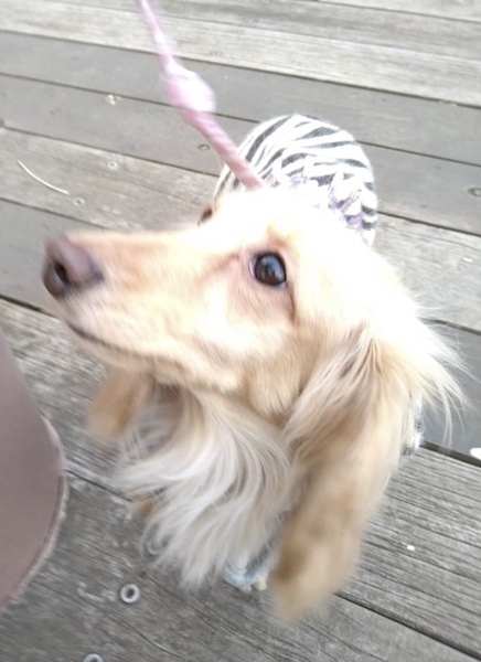 | 特徴(性格など) | ■特徴(仮の名前:のの) Mダックス♀推定7歳 体重4,5キロ ■性格・暮らし ・怖がりですが人が好きで、そばによって甘えてきます。 ・他犬とも卒なく過ごせます。 ・トイレシートの認識はあります ・同居中のダックス♀りりと2匹同時に迎えてくださる方を優先します。 ■今までに行った医療行為 ・避妊手術 ・チェリーアイ手術 ・鼠径ヘルニア手術 ・スケーリング ・血液検査 ・フィラリア検査(-) ・混合ワクチン接種 ・マイクロチップ装着 ・スケーリング |