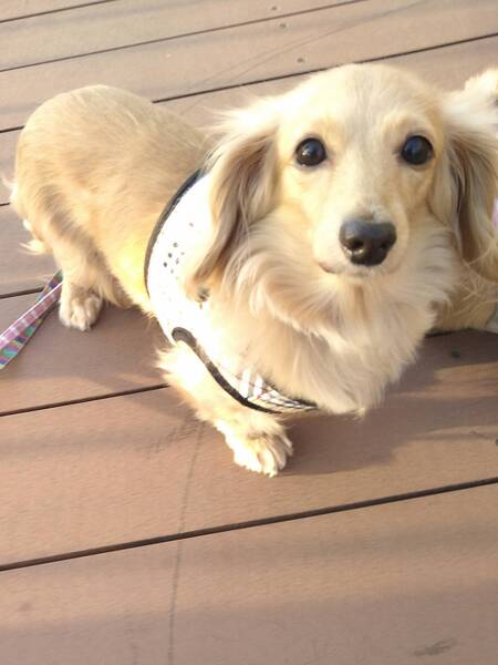 | 特徴(性格など) | ■特徴(仮の名前:りり) Mダックス♀推定5〜6歳 体重4,5キロ ■性格・暮らし ・怖がりですが、好奇心旺盛です。 ・他犬とも卒なく過ごせます。 ・お散歩は上手にできます ・同居中のダックス♀のの と2匹同時に迎えてくださる方を優先します。 ■今までに行った医療行為 ・避妊手術 ・乳腺腫瘍切除(良性) ・スケーリング ・血液検査 ・フィラリア検査(-) ・混合ワクチン接種 ・マイクロチップ装着 |