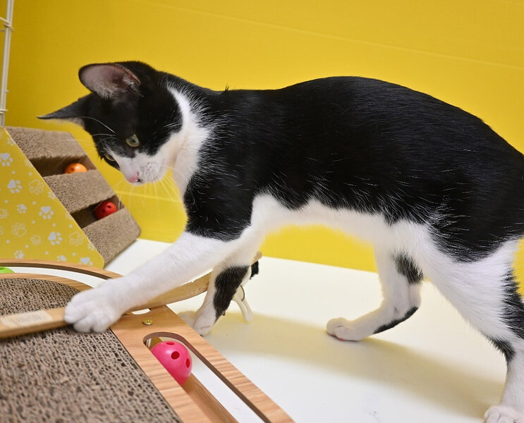 | 特徴(性格など) | ぶち猫「3c636」。 3c633と兄弟です。猫カフェひとやすみにいます。 遊ぶの大好きで、好奇心旺盛。 動くものがあると飛びつかずにはいられない性格です。 ですが、おとなしく爪切りをさせてくれる意外な一面も。 一緒に遊んで下さる方を、カフェでお待ちしております! |