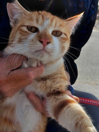 | 特徴(性格など) | 茶トラの男の子です。 控え目の甘えん坊。 甘えたくて、すり寄ってきます。 野良ちゃん出身なので、慎重なところもありますが、慣れたら甘えてきます。 抱っこもできます。 現在、2段ゲージで兄弟のくろ君と一緒に保護されています。 ケージばかりではかわいそう、と、保護主さんのお庭で、リードをつけてお散歩もしています。 |