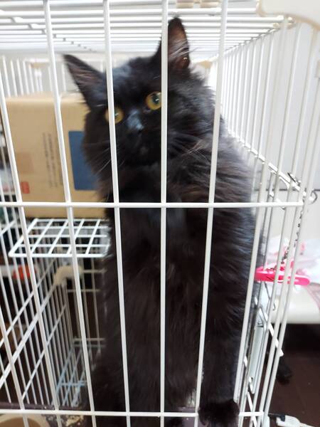 | 特徴(性格など) | 性格は甘えんぼで、とても活発です。 柄は全体は黒で首に白のファーを巻いたようになっています、長毛です。 |