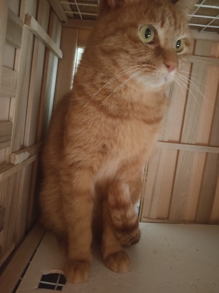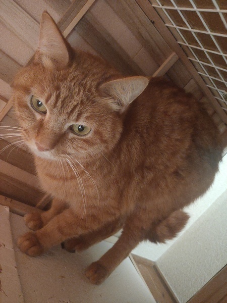 | 特徴(性格など) | 茶トラ♂すこし臆病なところがありますが慣れると甘えん坊です。 お顔がまん丸でミカンみたいです。 |