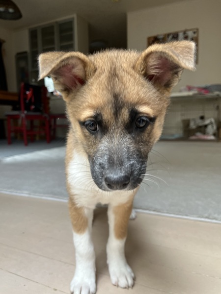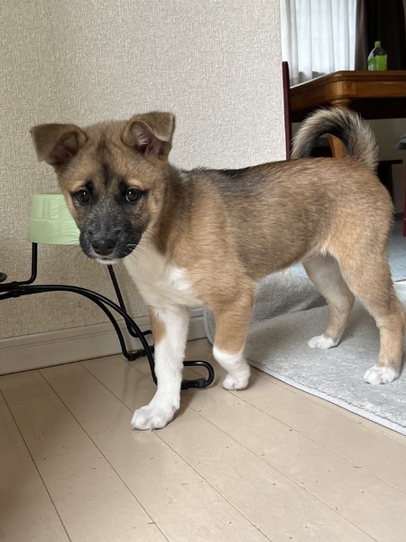 | 特徴(性格など) | お転婆でとても人懐っこく甘え上手な女の子!人にもワンちゃんにも尻尾を振ってご挨拶できます。小さなお子さんにも尻尾フリフリして喜びます?ただ、小さいワンちゃんには少し強気な一面もあります。 食事はふやかしたパピーフードを食べています。食欲旺盛です。 トイレはペットシートで成功することが多くなってきています。 お留守番と就寝時はゲージで過ごしています。 甘えん坊で撫でてもらうのが大好きな子なので、ずーっと可愛がってくださる家族に出会えますように✨ 【注意】親犬の犬種不明のため、成犬時の大きさはわかりせん。中型犬以上になる可能性もあります。 |