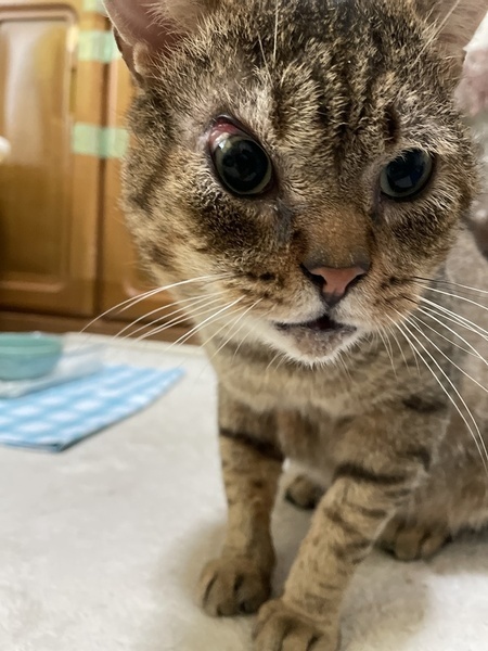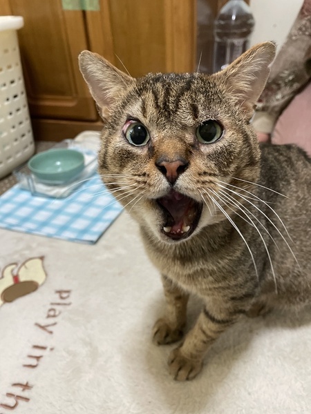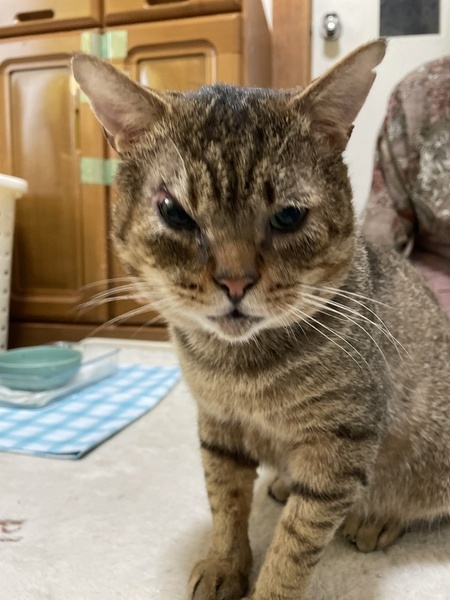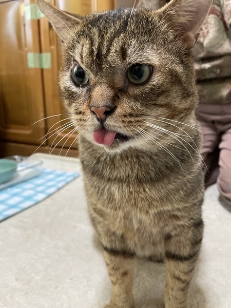 | 特徴(性格など) | クリーム色のキジ柄です。 チャームポイントは口元の周りがオレンジ色のグラデーションになってる所です。 保護した翌日には抱っこをねだる甘えん坊です。 大人しく滅多に鳴きません。 声はとても可愛いです。 ゆったりしているのでご高齢の方でも飼いやすいと思います。 |