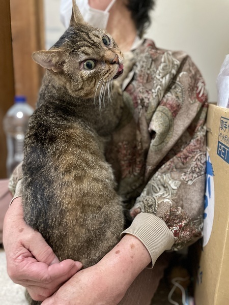 | 里親募集する理由 | 野良猫に餌やりをしている女性に頼まれ猫のTNRをしております。 この子は捕獲時、首に大きな怪我をしており家の中で安静にさせておりました。 とても大人しく抱っこが大好きなので里親を探すことにしました。 2022.1.30に保護しその時に血液検査、去勢手術を済ませております。 猫エイズ陽性、白血病陰性。 口内炎の治療をし現在は治まっています。 |