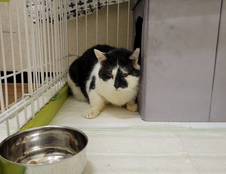 | 特徴(性格など) | 2011.8.27生まれ(推定) 毛色:白黒 大きなお顔・ガッチリ体型の白黒男子、又三郎。 食べるの大好き♡な食いしん坊!! 声をかけると、『ゴハ~ン』『おはよ~』と言ってるように 聞こえることがあります笑 気分が乗ってる時は、オモチャでも遊んでくれるようになりました☆ 本来とても臆病な性格なので、少しずつ人間との距離を 縮めつつありますが、まだまだシャーシャー、 猫パンチが出てしまいます。 ゆっくり又三郎のペースに合わせてくださるような 里親様との出会いを待っています!! |