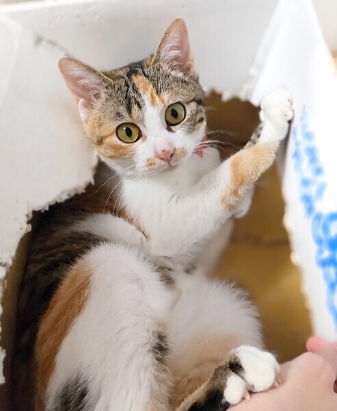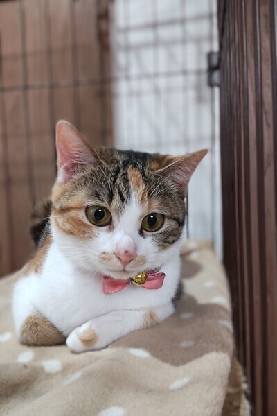 | 特徴(性格など) | 三毛猫のミッケちゃん、物怖じしない性格で人が大好き!人懐っこくスリスリ甘えてきてくれます(^^) じーっと見つめられたら幸せいっぱいですよ♪ ぜひミッケちゃんに会いに来てください☆ ・避妊手術済み ・ノミダニ便虫駆除済 ・エイズ(−)白血病(−) ・3種混合ワクチン接種済 |