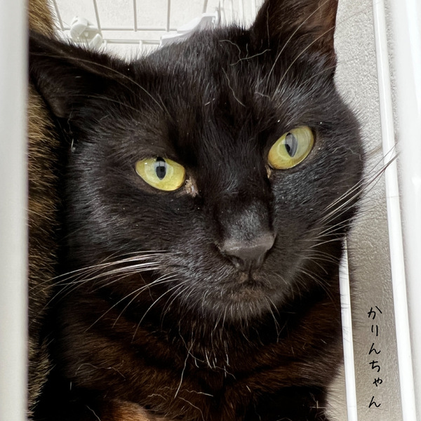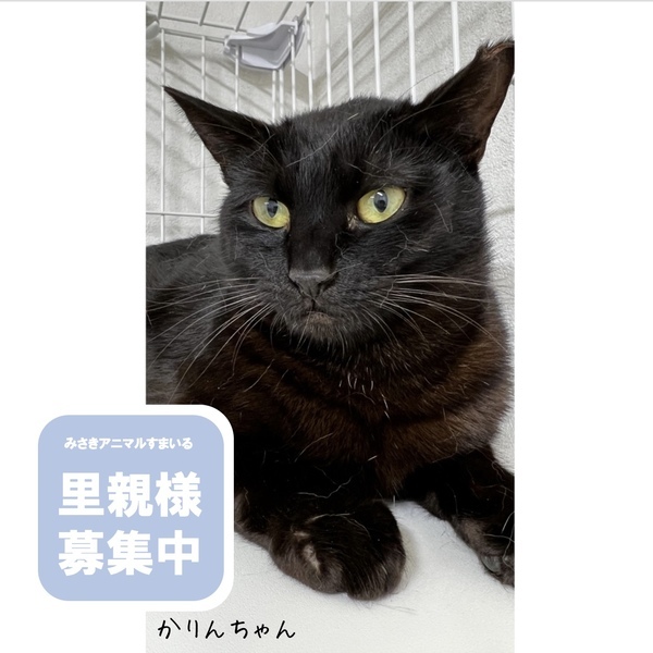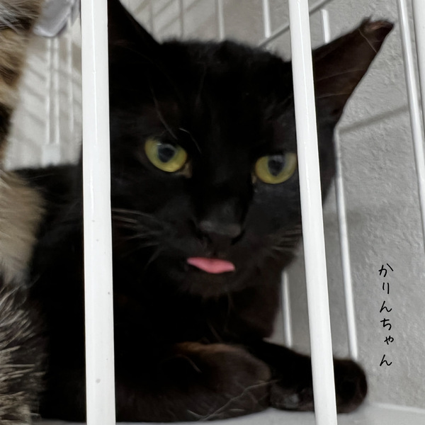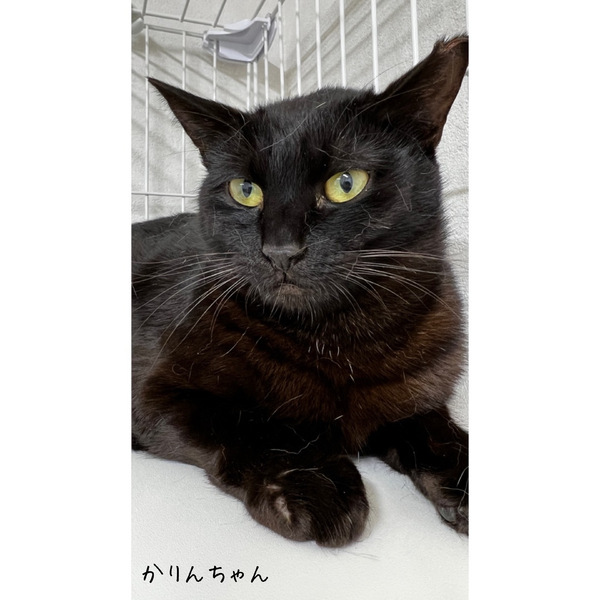 | 特徴(性格など) | 仮名:かりんちゃん ・メス ・推定1歳位 ・避妊手術済 ・健康です ・美猫3姉妹です ・いつも一緒で仲良しなので、できれば3匹(きなこ・かのこ・かりん)を一緒に迎えてくれる方を希望します! 黒猫 クロネコ くろねこ |