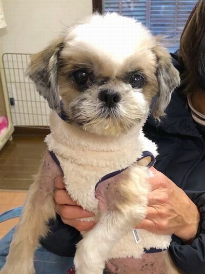 | 特徴(性格など) | ■特徴 仮の名前:ラム シーズー♀白黒茶 体重3.8キロ 推定10歳 ■性格・暮らし ⚪︎お散歩が好きで楽しそうに歩きます。 ⚪︎トイレは外でも室内でもできます。 ⚪︎人懐こく、他の犬、猫にも友好的です。 ⚪︎ケージでの留守番、就寝はできますが 多少の 吠えもあります。 ⚪︎室内フリーでも悪戯はしません。 ⚪︎引き取り時 酷い脂漏症からのマラセチアを発症していました。 現在はシャンプーケアで良くなっていますが今後も シャンプーケアは必要です。 ■今までに行った医療行為 ⚪︎6種ワクチン 12/15 ⚪︎マイクロチップ 1/ ⚪︎健康チェック 2/15 ⚪︎フィラリア - 12/15 ⚪︎検便 - 12/21 ⚪︎避妊手術、歯科処置 3/15 ■今後行う予定の医療行為 ⚪︎狂犬病ワクチン |