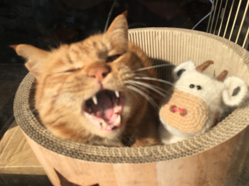 | 特徴(性格など) | 茶トラ お腹までぜーんぶ茶トラ おおらか 良く食べ 良く遊び 良く寝る子 |