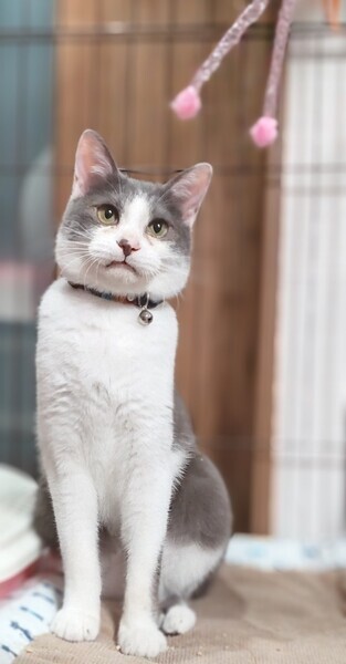 | 特徴(性格など) | グレーのハチワレがおしゃれなその名もグレーくんww。 ちょっと最初は慎重ですが、慣れてくるとお膝に乗って甘えてきます(^^) そしてゴロゴロ言いながらフミフミチュパチュパしてきます。それがカワイイんです♪ グレーくん、癒しになること間違いなしです! ・去勢手術済み ・ノミダニ便虫駆除済 ・エイズ(−)白血病(−) ・3種混合ワクチン接種済 |