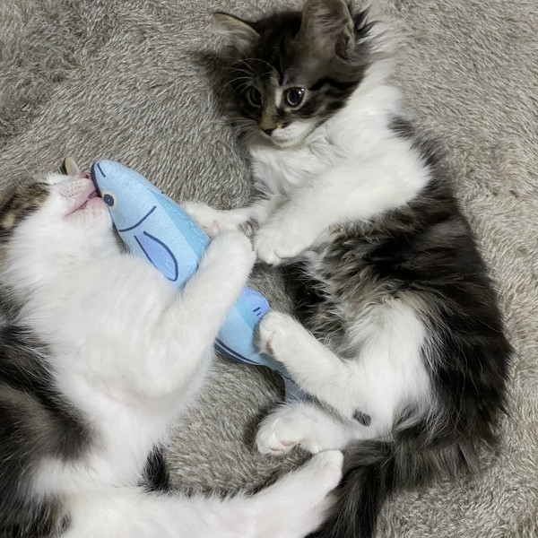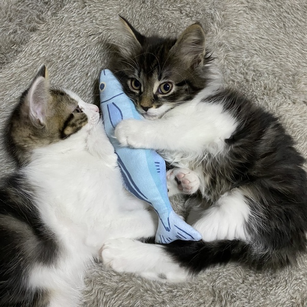 | 特徴(性格など) | ☆茶トラ:短毛 少し臆病ですがイタズラ好き ☆白黒(サバミケ?):短毛 好奇心旺盛で元気、小顔 ☆白黒(黒多め):長毛 元気で人懐こい |