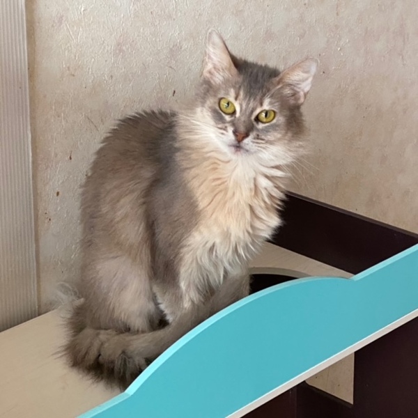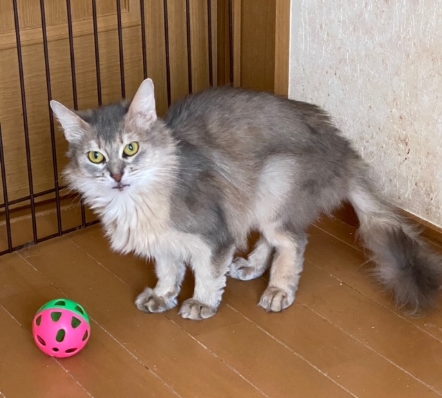 | 特徴(性格など) | 名前:ニーナ 女の子 ソマリ 毛色:ブルー とっても人懐こく可愛い子です。好奇心旺盛で初めて見るであろうおもちゃなども興味深々で遊んでいます。 初心者の方でも飼えるほどの性格花丸の女子ですよ。 現在健康状態は良好です。 不妊手術 3種混合ワクチン 猫エイズ・白血病検査:陰性 検便:陰性 マイクロチップ装着 痩せ気味ですが、栄養価の高いフードで対応しています。 食欲もあり元気いっぱいです。 |