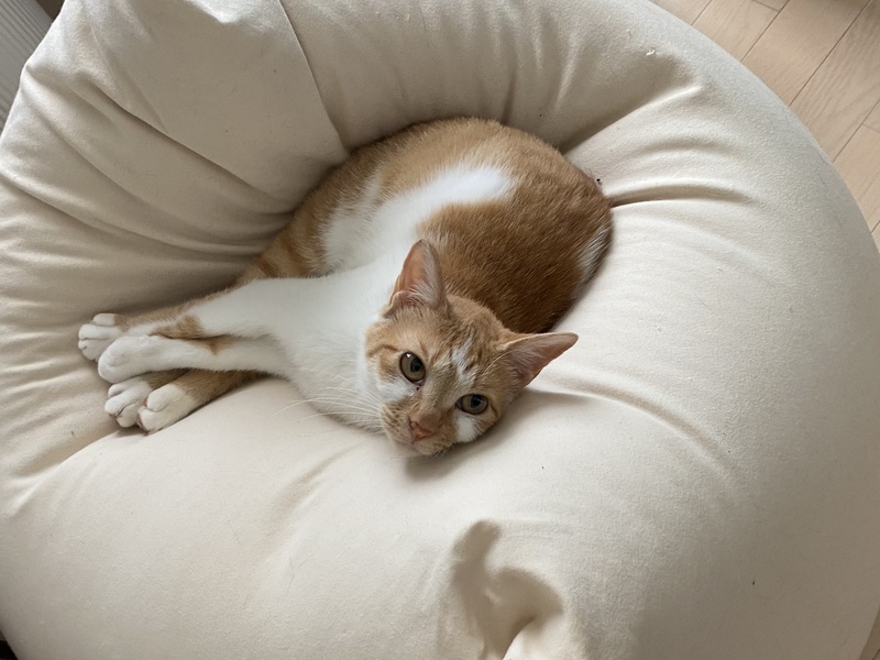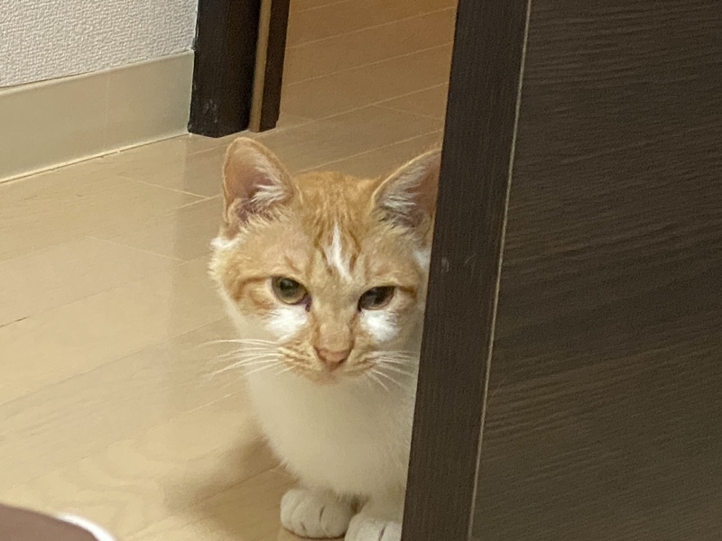 | 特徴(性格など) | 茶白の♀猫 猫が好きで、猫とは仲良しになれますがまだ人を警戒しています。 ですが、人が寝ている上に乗ってきたり近寄って来て匂いを嗅いだり、人に興味はあります。 |