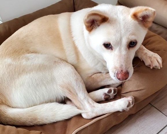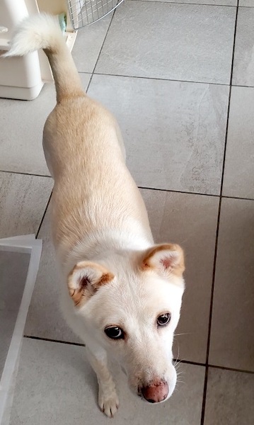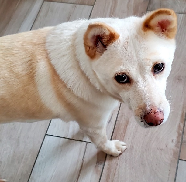 | 特徴(性格など) | MIXの『こと』です。 (ちばわんHP掲載番号No.4385)←申込時は犬の名前とこの番号を記載し、下記内容をよくお読みの上、必ずちばわんHPからお願いします。 ※「生まれた月日」は推定です。生育環境によって誤差が生じることがあります。 【毛色】白 【体重】14.5kg 【状態】ワクチン接種済、ノミ・ダニ駆虫済、検便(-)、フィラリア(+)、マイクロチップ装着済、狂犬病予防接種済 【人馴】問題なし 【性格・その他】穏やかで甘えん坊の女の子です。 いつも人の後をついて歩き、人の姿が見える場所で過ごしています。犬と遊ぶよりも人のそばにいることが好きなようで、穏やかな同居犬とはトラブルなく生活していますが、相手に唸られたり吠えられたりすると強気で向かっていくことがあります。 人に対する攻撃性は全くありません。シャンプーや足拭き、ブラッシングなどのお手入れも嫌がりません。 排泄は朝夕のお散歩時に済ませています。 お散歩が楽しみで、準備を始めると飛び跳ねて喜びます。お散歩中、排泄が済むまでは引きがありますが、排泄後は落ち着いて歩きます。お散歩で犬を見かけると興奮し吠えることがあります。 食事はドライフードに野菜や肉をトッピングして与えています。食欲は旺盛で何でもよく食べます。 車に乗る際は少し怖がりますが、乗車中はおとなしく、車酔いもありません。 普段は室内フリーで生活していますが、お昼寝や就寝時は自分からクレートの中に入って休んでいます。 お留守番時に後追いして吠えることがありますが、人の姿が見えなくなると諦めて静かになります。吠え声はやや大きめです。 フィラリアは陽性ですが、特に症状はありません。ボルバキア治療と通年の予防薬投与で早期陰転を目指しています。 外に出ることが大好きなため人と一緒に室内のゲートをすり抜けようとすることがありますので、脱走・逸走防止に関しては決して過信することなく、しっかり対策をしてくださるご家庭を希望しています。 引き続き完全室内飼育で、定期的なワクチン接種やフィラリアの治療と予防などの健康管理、脱走・逸走防止に関する厳重な注意と住居等の対策を必ずお約束していただける関東近県のご家庭で、終生家族の一員として大切にしてくださる方からのお問い合わせをお待ちしております。 大変申し訳ありませんが、高齢の方のみのご家庭である場合のお申込みにつきましてはお断りさせて頂きますので予めご了承下さい。 【預かり場所】茨城県日立市 【預かり日記】くるりんしっぽ隊 https://blog.goo.ne.jp/kururinshippotai/ kururinshippotai(インスタグラム)https://www.instagram.com/kururinshippotai/ 【申込み】ちばわんの保護犬『こと』への申し込みはhttp://www.chibawan.net/contactform_dogからお願いします。 |
