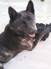 | 特徴(性格など) | 【色柄・性格など】 黒色の毛に濃い金色のような虎毛が入っています。甲斐犬の中では小さい方ですが、立っている姿がシュッとしていて綺麗です 家にいるときは人懐っこくとても元気です。散歩に出ると臆病なところがありますが、人や他の犬にすごく興味を持って近づいていきます 一般的なしつけは問題なくこなせます。他にも「おいで」というとこちらに来て、「ジャンプ」と膝をたたくと上に乗ります。「待て」と言えば目を合わせてずっと待ち続けることができます 動くのがとても好きでおもちゃで遊んだり、散歩ではよく走っています。落ち着いているときは触るとすぐに近くに座ってじっとそばにいてくれます ドックフードもおやつもよく食べています。今年で8歳になりますが、まだ子犬?と聞かれるくらい若く、とても元気です 【苦手なもの】 ・救急車のサイレンが鳴ると、遠吠えのように鳴いてしまうことがあります ・雷の音を怖がります ・工事現場の大きい音が苦手です 【健康状態】 ・特に問題なく健康ですが、2〜3ヶ月に1回ほどの頻度で、ドッグフードを吐くことがあります ・避妊手術はしておりません |
