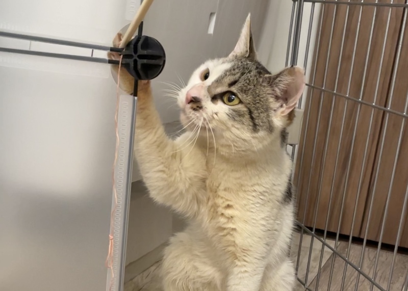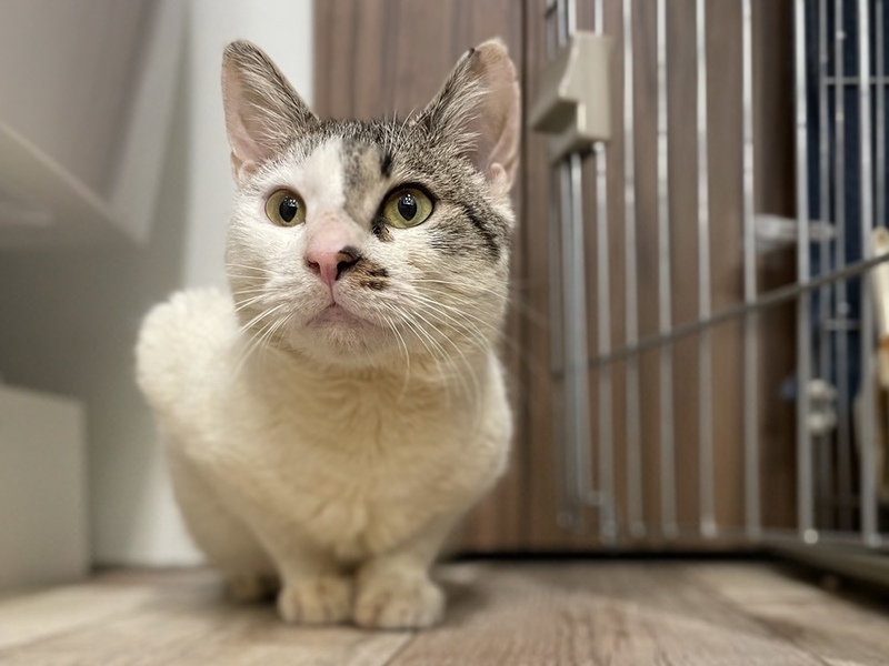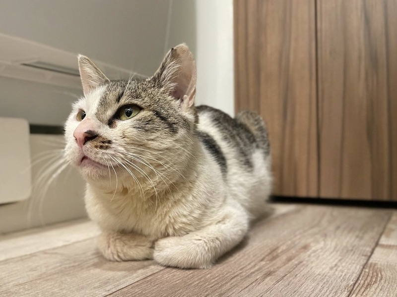 | 特徴(性格など) | キジ白で可愛いボブテイルの男の子。我慢強く、良く食べ良く眠る自立した猫です。 お気に入りの段ボールの中でひっくり返って寝たり、おおらかで憎めない猫です。 コーヒーで汚れた体も懸命に毛づくろいをしてどんどんきれいになっています。 保護者の家には先住猫がいるのでケージの中で暮らしていてなかなか慣らすのに時間がかかっていましたが、ブラッシングをしたり、なぜたりが出来るようになったので、直に懐いてくれると思われます。そのためにも早くケージから出してあげたいのです。 |