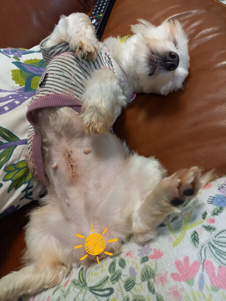 | 特徴(性格など) | ■特徴(仮の名前:ベル) シーズー×マルチMIX♀️ 推定4歳 体重3.9kg ■性格・暮らし ・元気で活発です。 ・甘えたで体のどこをさわっても大丈夫です。 ・散歩は上手に歩けます。対犬も自ら進んで挨拶します。 ・外でも室内でも排泄できます。室内シートはトレーニング中です。 ・サークルは苦手です。 ■今までに行った医療行為 ・健康チェック(3/4) ・血液検査(3/4) ・6種混合ワクチン(3/4) ・フィラリア検査(-)(3/4) ・検便(-)(3/12) ・マイクロチップ装着(3/14) ・歯科処置(3/14) ・避妊手術(3/14) ■今後行う医療行為 ・狂犬病予防注射 |