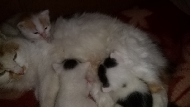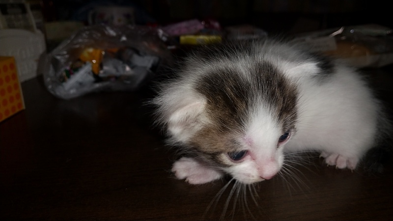 | 特徴(性格など) | 白茶、白黒茶、白黒2匹の3匹が生まれました。 自宅出産のまま5週間経過し、一緒に暮らしています。 健康で、母乳のみで育っています。 現在、乳離れがおこり、 ウェットのペットフードと水、たまにカリカリの食事になりました。 |
